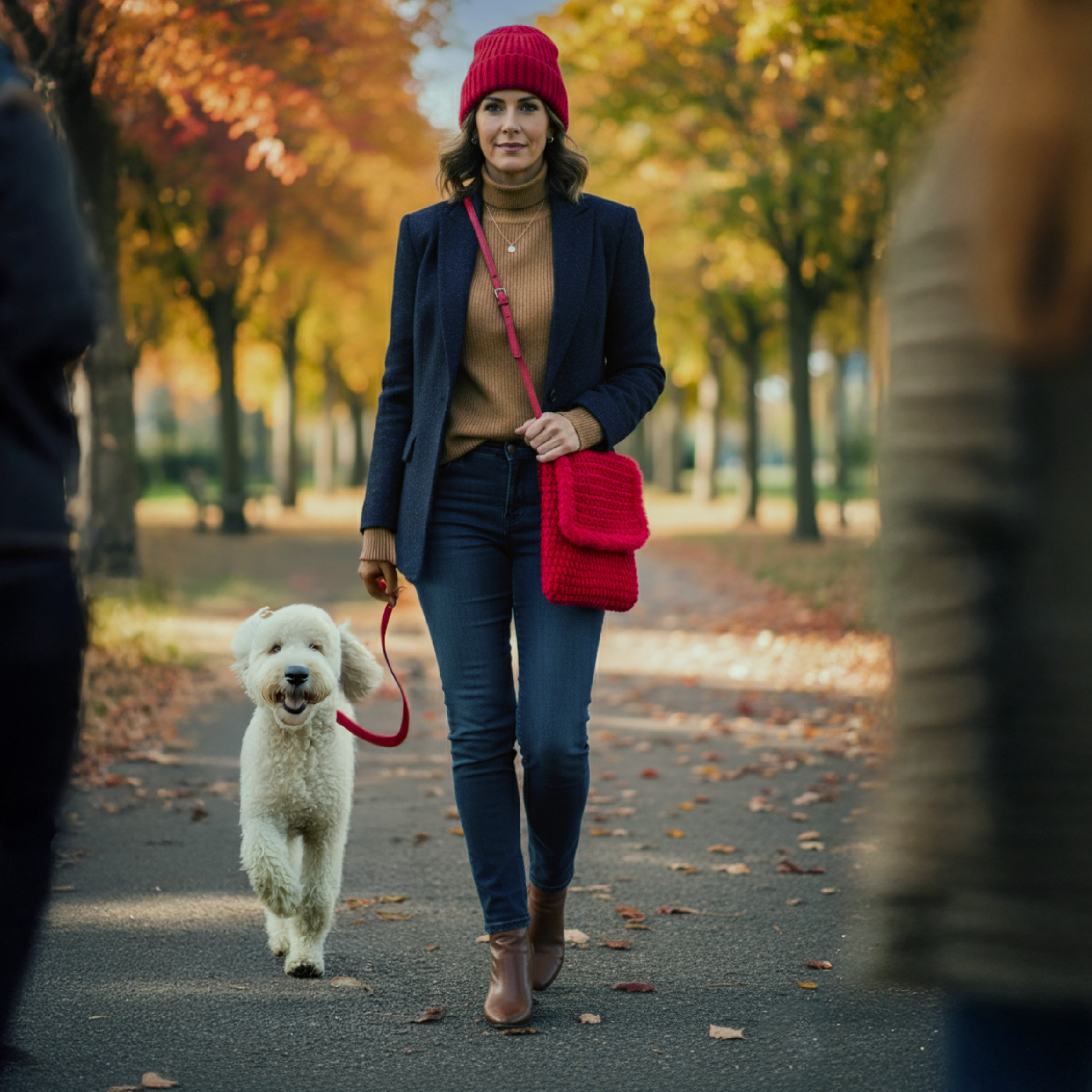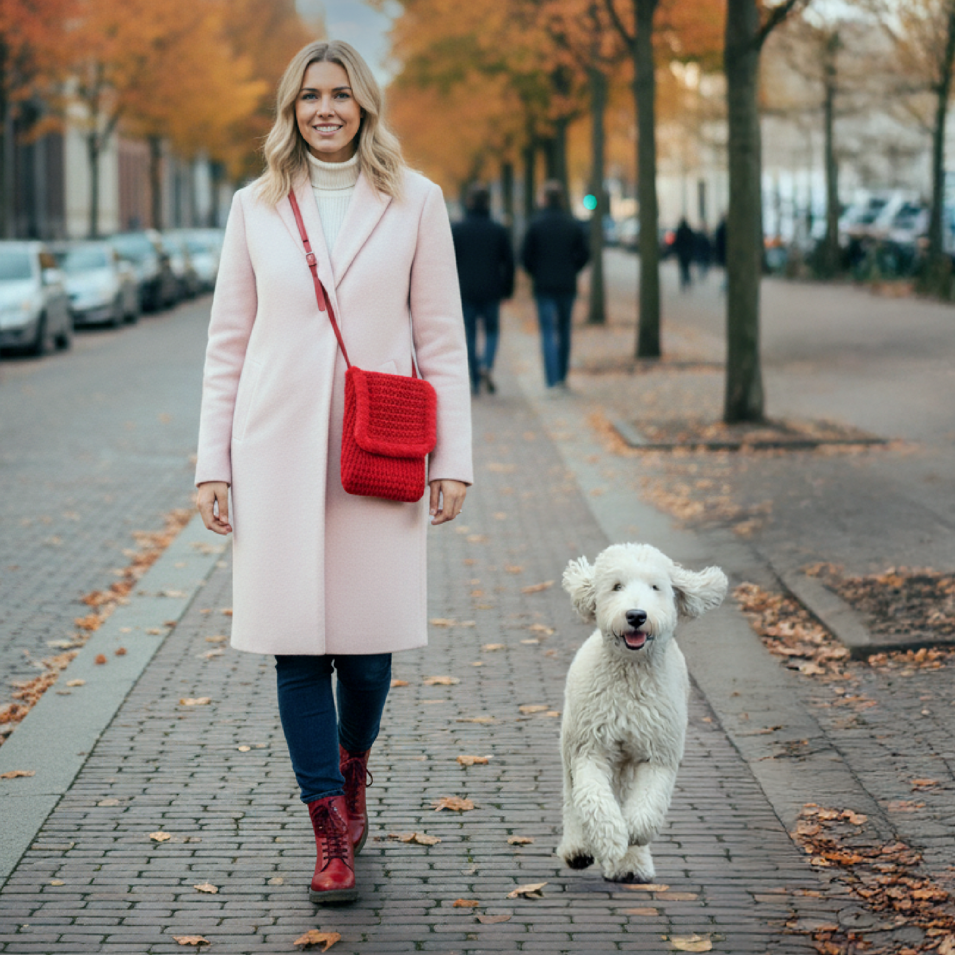 Das Ergebnis ist ein Designstück, das auffällt und zugleich alltagstauglich bleibt – ob beim Stadtbummel, beim Spaziergang oder als Akzent zu deinem Lieblingsmantel.