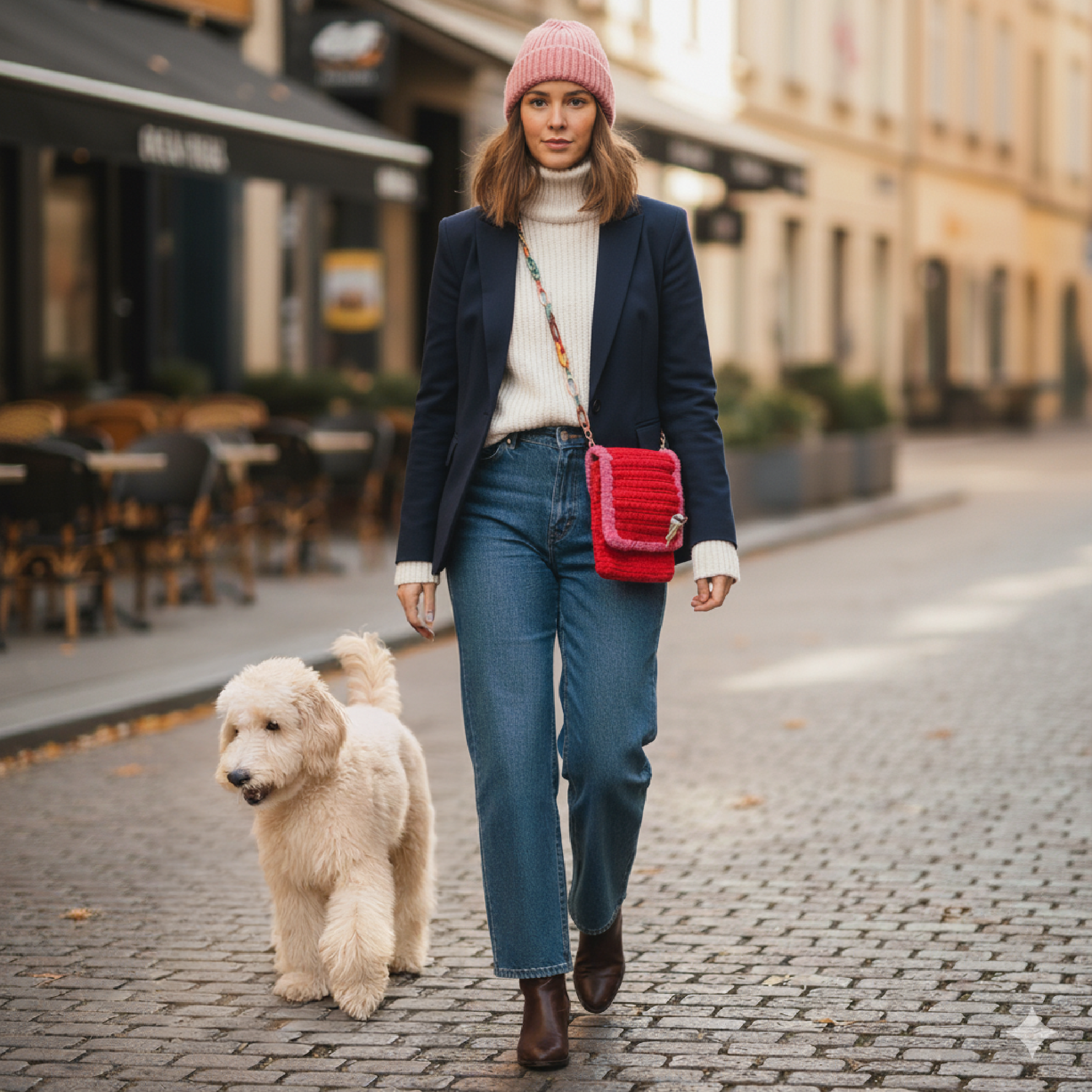 Gefertigt aus weichem Samtgarn und hochwertigem Kunstfell, verbindet HOOK #143 Design und Handwerk zu einem auffälligen Einzelstück, das sofort ins Auge fällt – egal, ob beim Stadtbummel, im Café oder unterwegs mit dem Hund.
